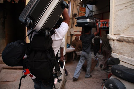此時就是狡詐的司機露出真面目的時候了。他先說這家旅館很貴,要推薦其他河邊旅館給我們,再來又問我們需不需要請挑夫搬行李(這一點其實剛剛我也有在想,因為地上有些髒亂,行李不適合拖著走,而我們內部又有無法搬重物又愛帶大行李的ㄠˋ少年),最後回到原來停車處時他居然獅子大開口跟我說車資是Rs.400,他堅持他之前說的是一車Rs.200,但我也確定我當時沒聽錯。這件事情弄到最後雖然我們還是妥協了,但卻讓大家因此對印度人留下了不老實的壞印象!