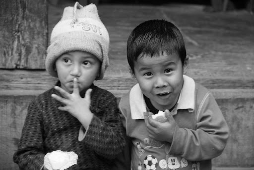 (這兩個古錐囝仔正開心地吃著我們給的海綿蛋糕)
